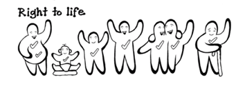 The ‘Right to life’ sequence (below) conveys a disturbing notion that the right to life diminishes over the life-course, and that a couple has less of a right to life than a single person. It is hard to see what is achieved here, as any ranking of different people’s ‘right to life’ seems to runs counter to the spirit of human rights as ‘rights for all’.